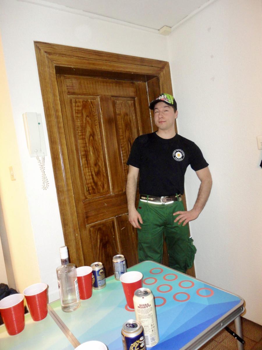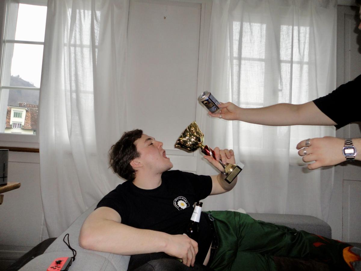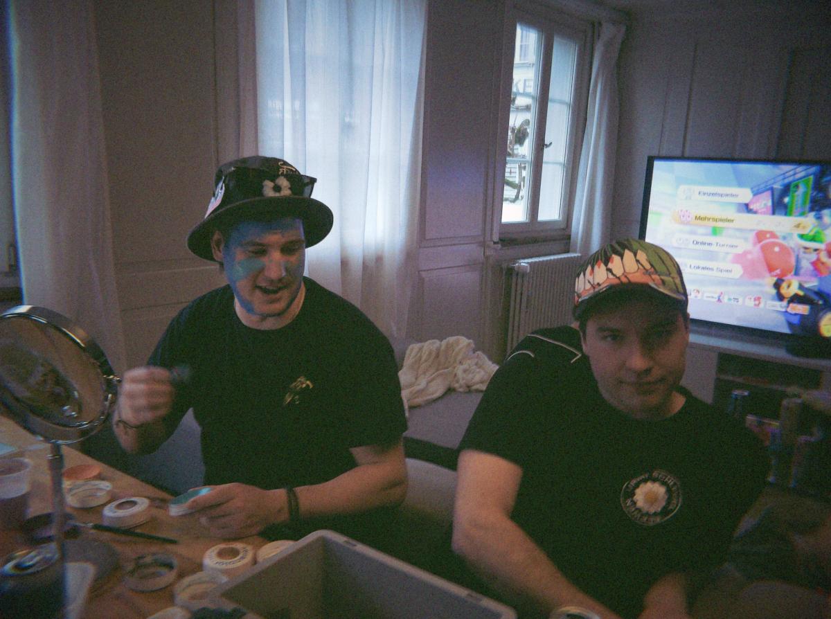Unser Major versprach noch einige Tage zuvor, dass alle eingeladen seien und sagte Zitat: «Am Zwölfi isch s’Bier chalt und d’Spaghetti warm!». Um sicherzugehen, dass wir hier nicht eiskalt angelogen werden, standen einige der sonst immer eher verspäteten Urmis um Punkt 12 auf der Matte. Und siehe da, das Bier war kalt und die Spaghetti zwar warm aber noch nicht al dente. Ob da nun alle Versprechen eingehalten wurden, wage ich zu bezweifeln. Nach einiger Zeit gab es dann endlich die erste Runde Spaghetti und das Schminken Trinken war offiziell eröffnet. Es wurde Mario Kart gespielt, Beerpongbälle geworfen und Kartenspiele erklärt. Der Niveauunterschied unter den Urmis war bei allen drei Aktivitäten sehr gross. So hätten einige eher Stützräder gebraucht, um richtig zu fahren, andere wiederum täten sich gut ein paar Würfe zuhause zu trainieren, damit wenigstens der Tisch getroffen wird. Am schlimmsten aber kam der Niveauunterschied oder eher der Generationenunterschied beim Kartenspiel auf. So durften unsere Urmisplainer (fast wie ein Mansplainer, nur viel besser) immer wieder erklären, wer zum Beipsiel Mike Shiva ist, was Sodomie bedeutet oder warum Smegma nicht gerade viel mit einem Pokemon zu tun hat.