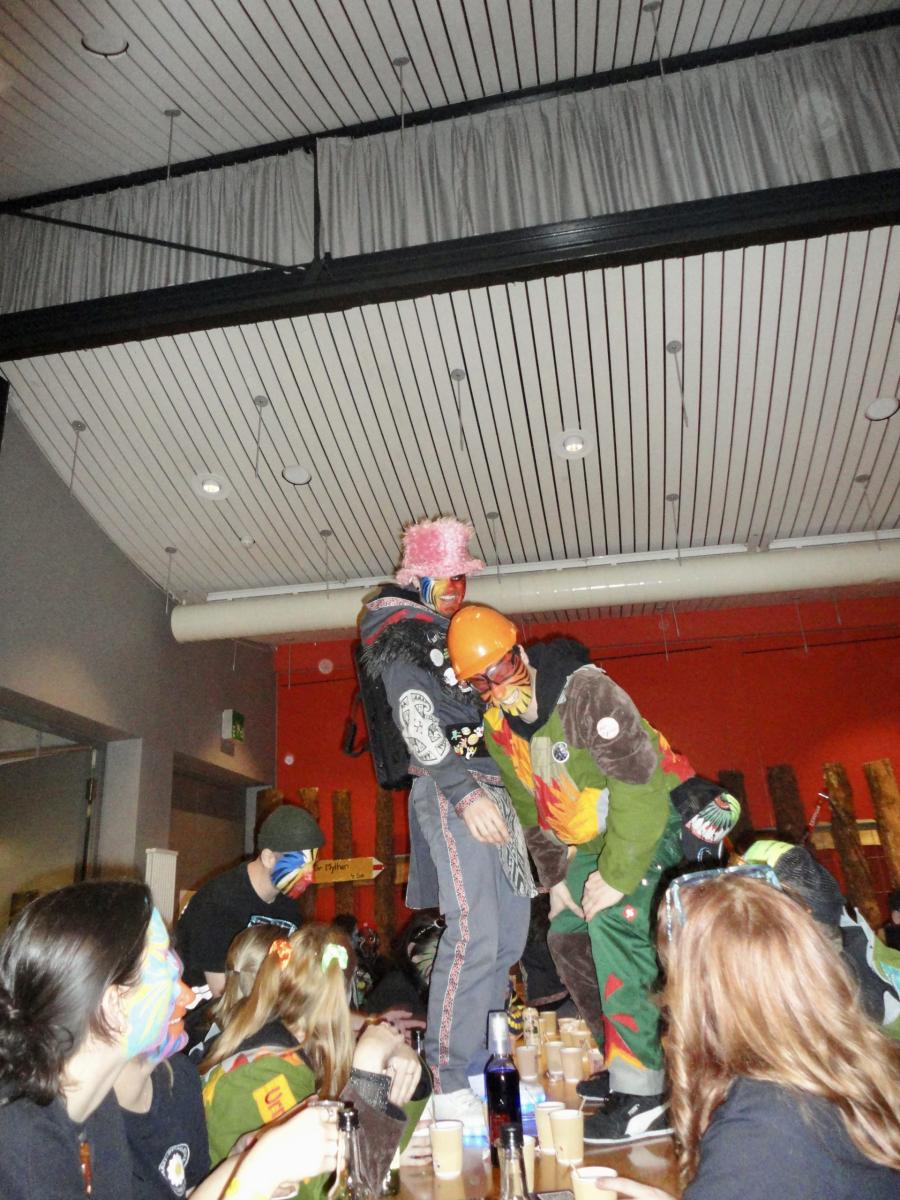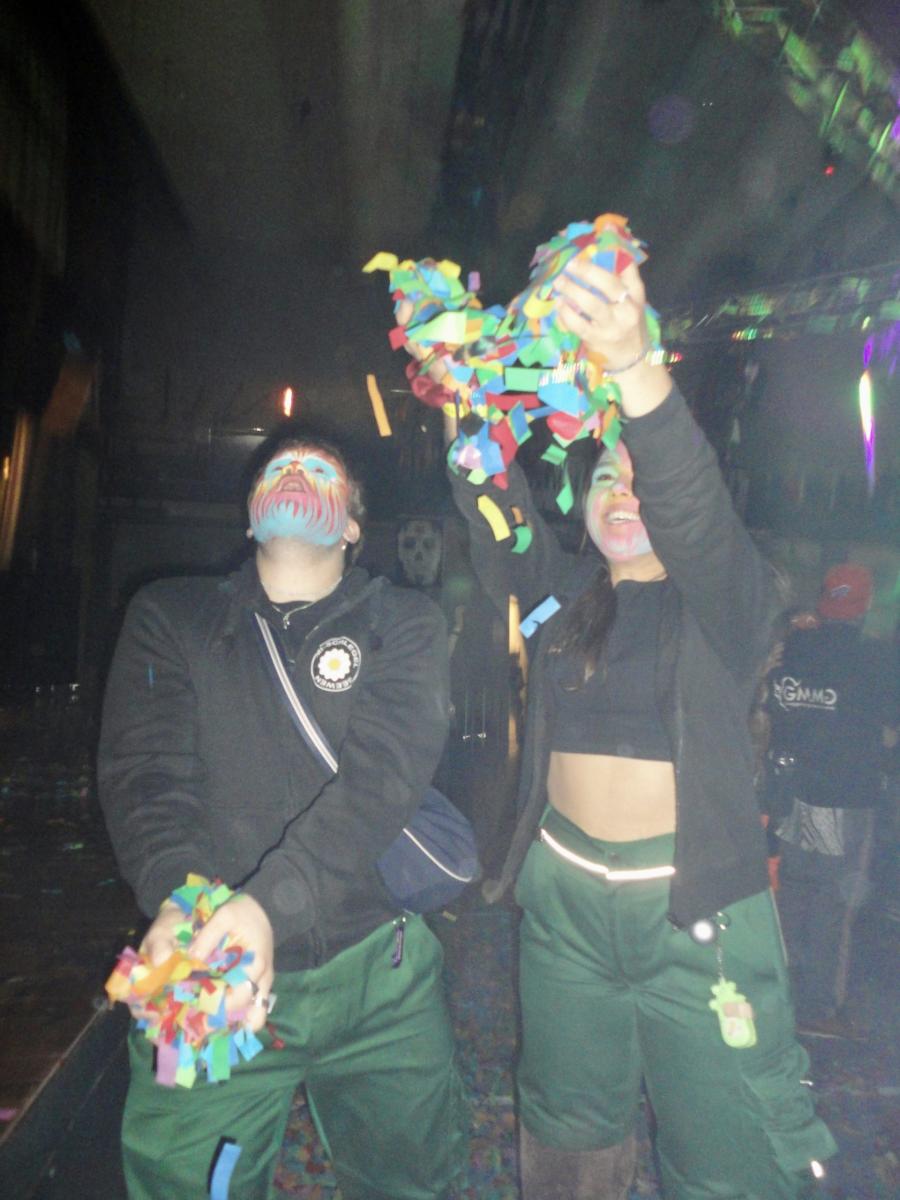 Nach dem tollen Auftritt waren alle in noch grösserer Partylaune. Es wurde getanzt, gesungen, diskutiert und Weisheiten weitergegeben. So wurde einem Pröbi beigebracht, wie wichtig es sei, das eigene Hydrationsniveau stets im Auge zu behalten um ja nicht in die Unterhopfung zu fallen und deswegen immer beide Hände auszulasten. Nachdem sich der Abend schon langsam seinem Zenit näherte passierte noch ein Wunder. Ein verloren geglaubtes Mitglied der Urmis tauchte plötzlich auf dem Festareal auf. Es trug zwar ein komisches Gwändli, wurde aber nach kurzer Zeit trotzdem herzlichst begrüsst. Wieder vereint feierten die Urmis munter weiter. Einige sogar noch bis in die Morgenstunden. Man munkelt, dass es in der ominösen Urmi-WG noch einen weiteren Spaghettiplausch inkl. Klingelstreich gegeben haben soll, ob dies aber stimmt, kann ich nicht bestätigen.