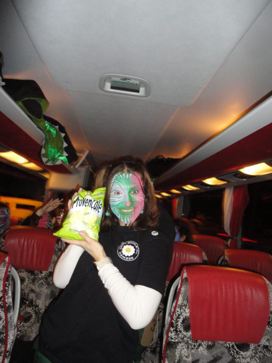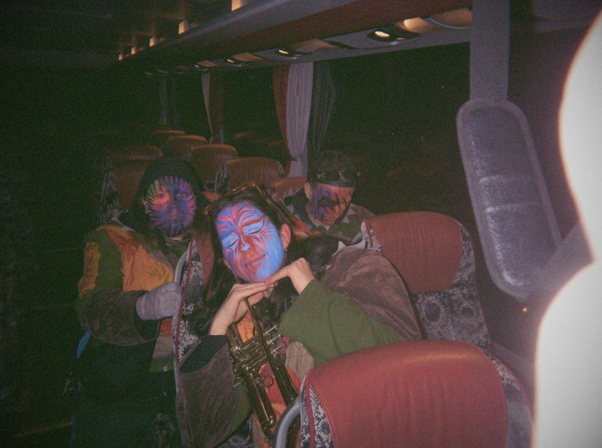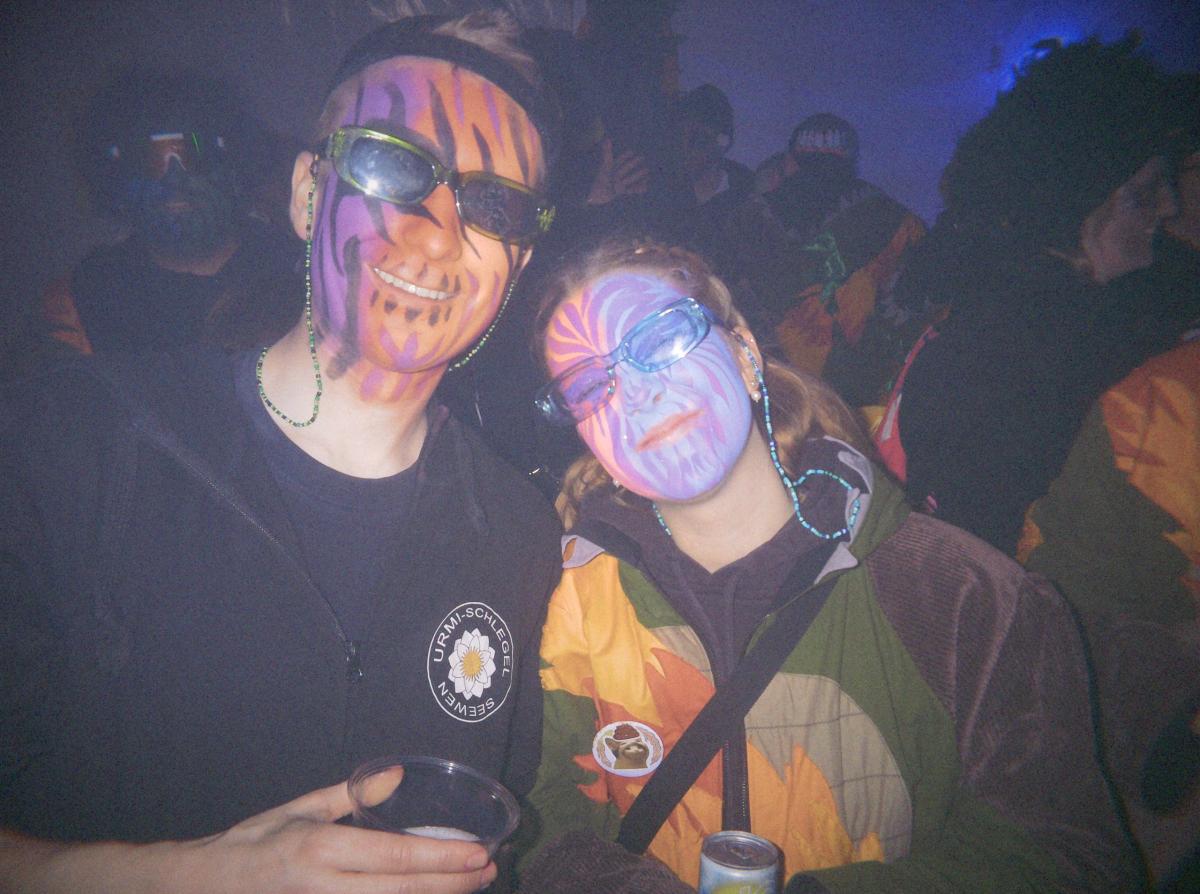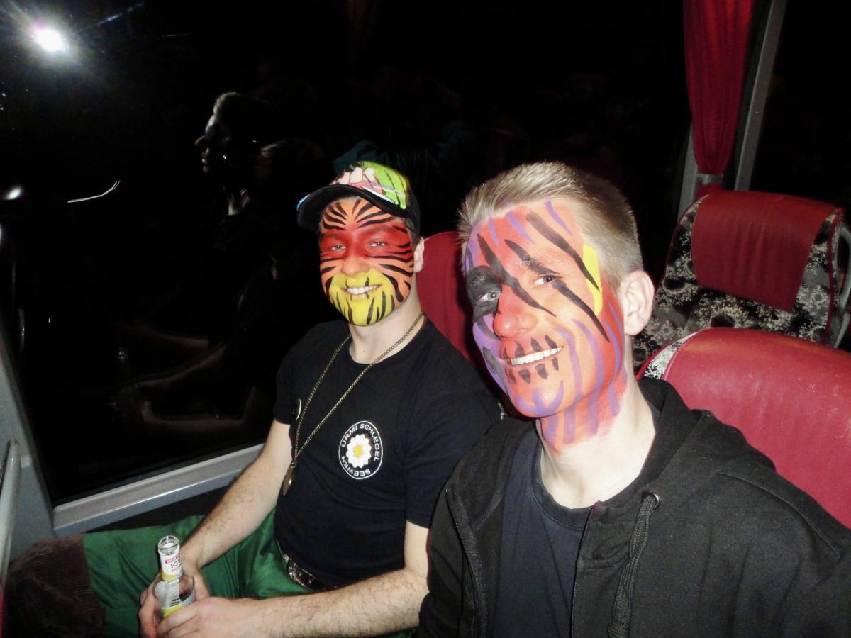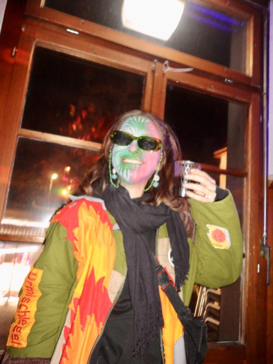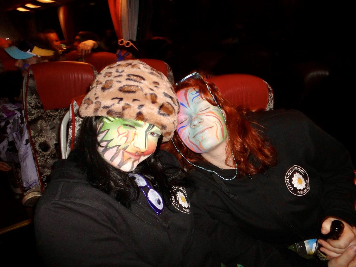 Das Urmi-Volk traf sich also früeh im Proberaum, versorge die Leber mit ordentlich Klang Wasser und schmierte sich mehr oder weniger euphorisch unsere geliebte Farbe in die Visage. «Wele Dubel hed erfunde das Guggene sich mönd Schminke?»