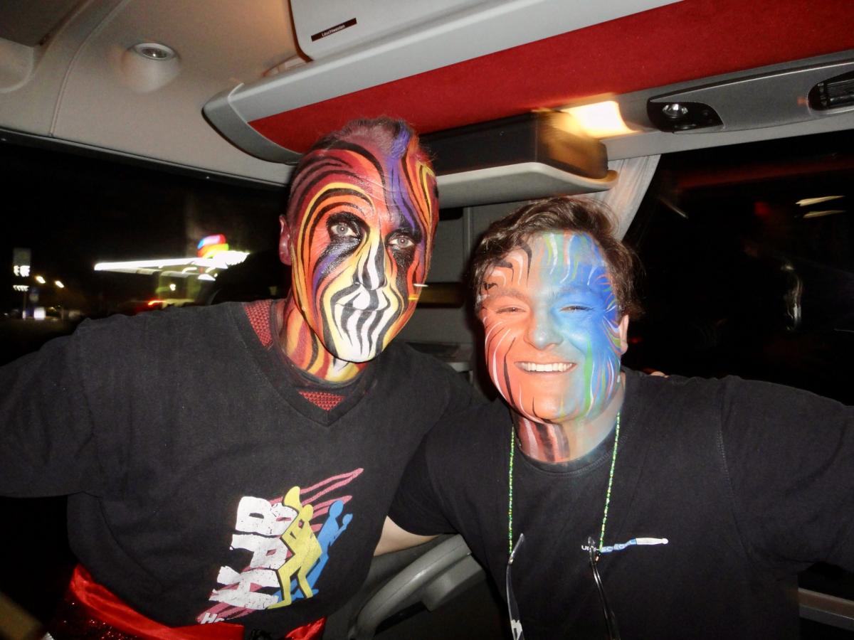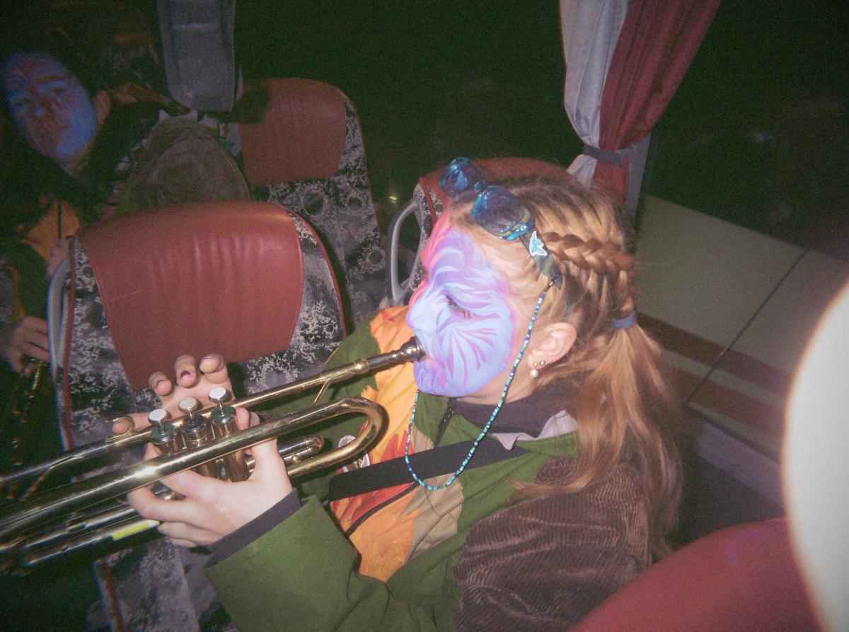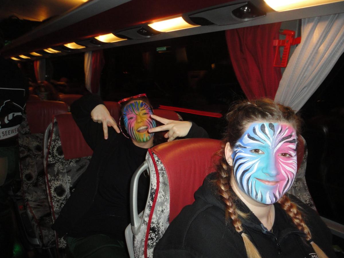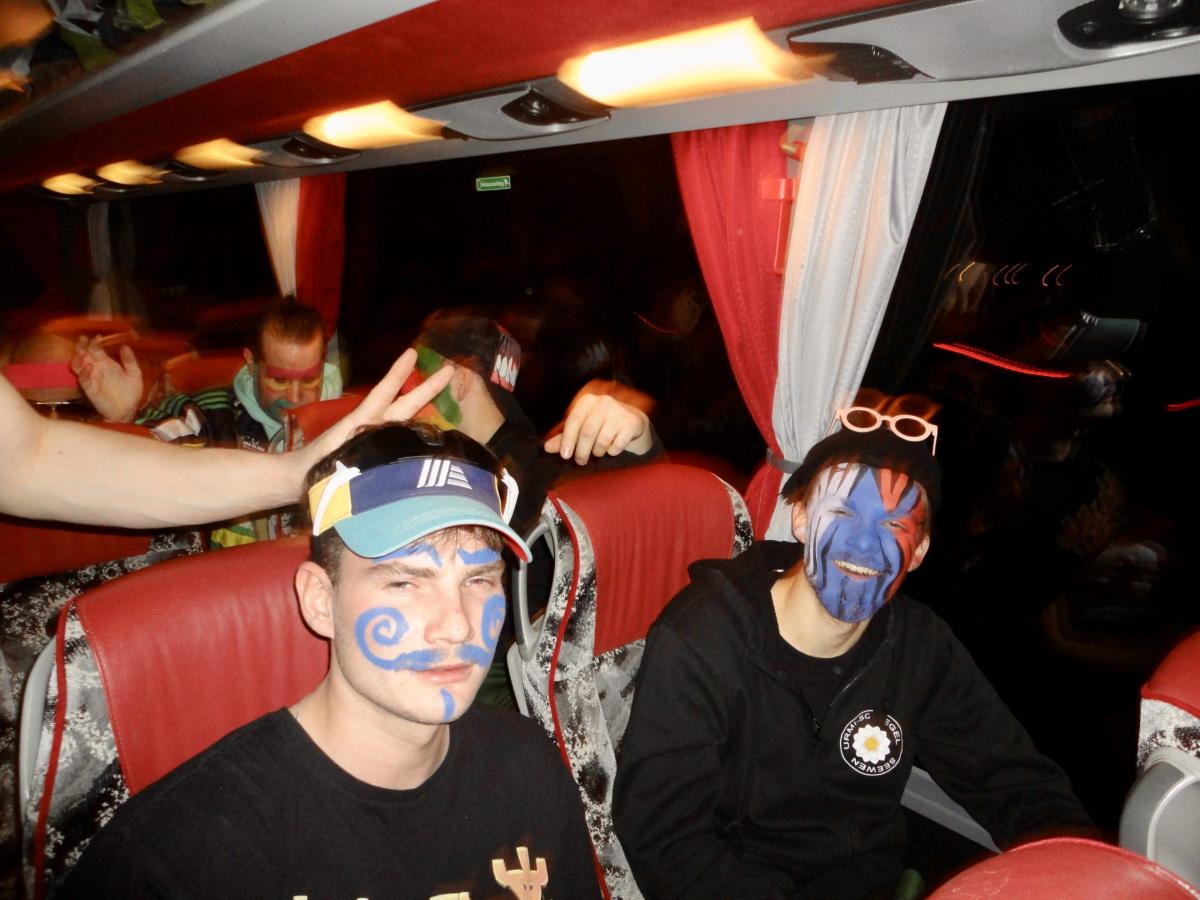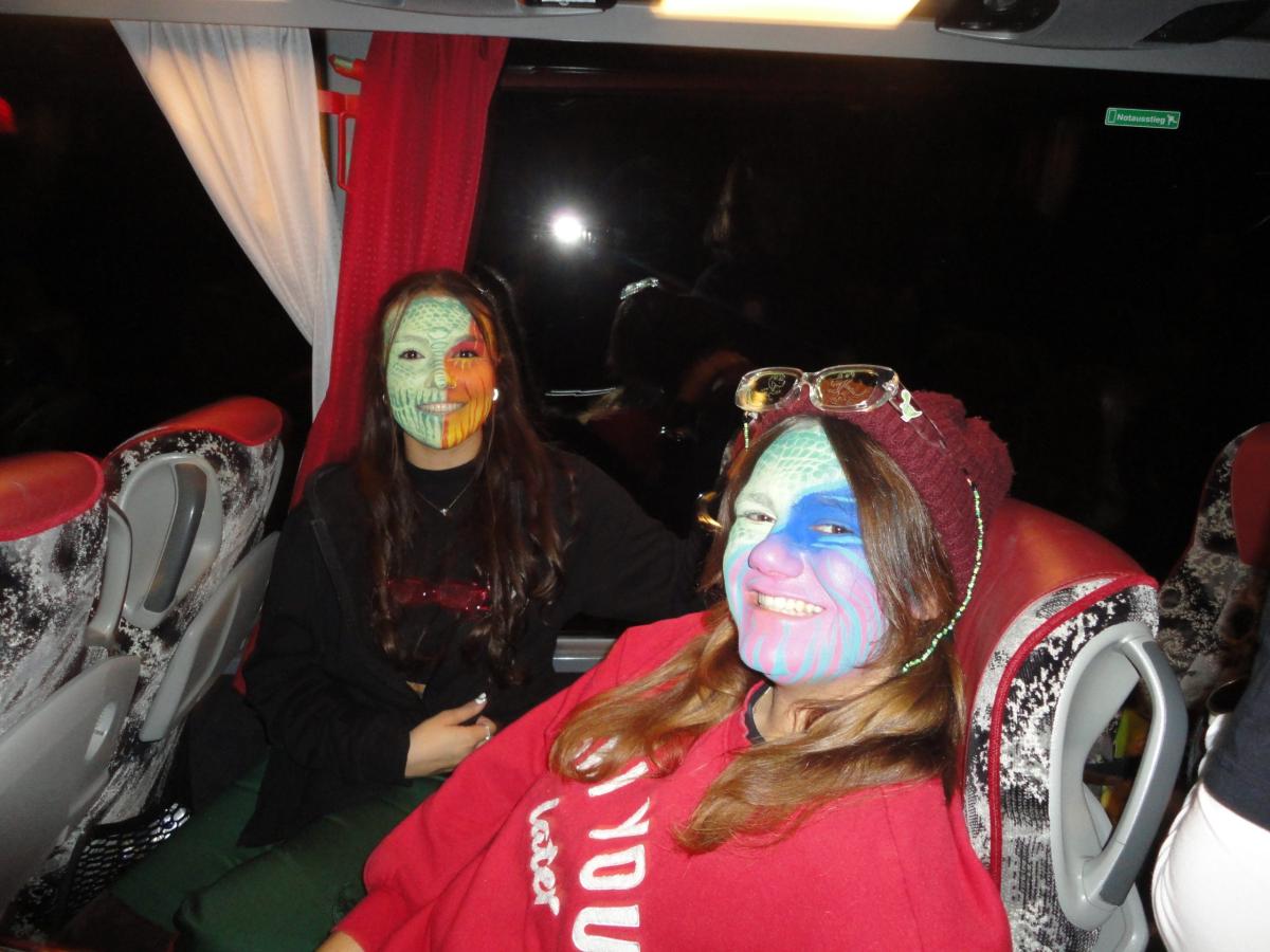Das Urmi-Volk traf sich also früeh im Proberaum, versorge die Leber mit ordentlich Klang Wasser und schmierte sich mehr oder weniger euphorisch unsere geliebte Farbe in die Visage. «Wele Dubel hed erfunde das Guggene sich mönd Schminke?»