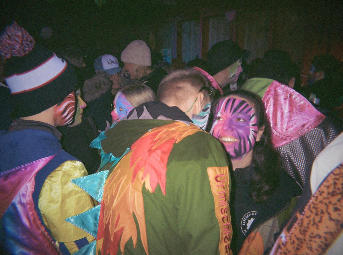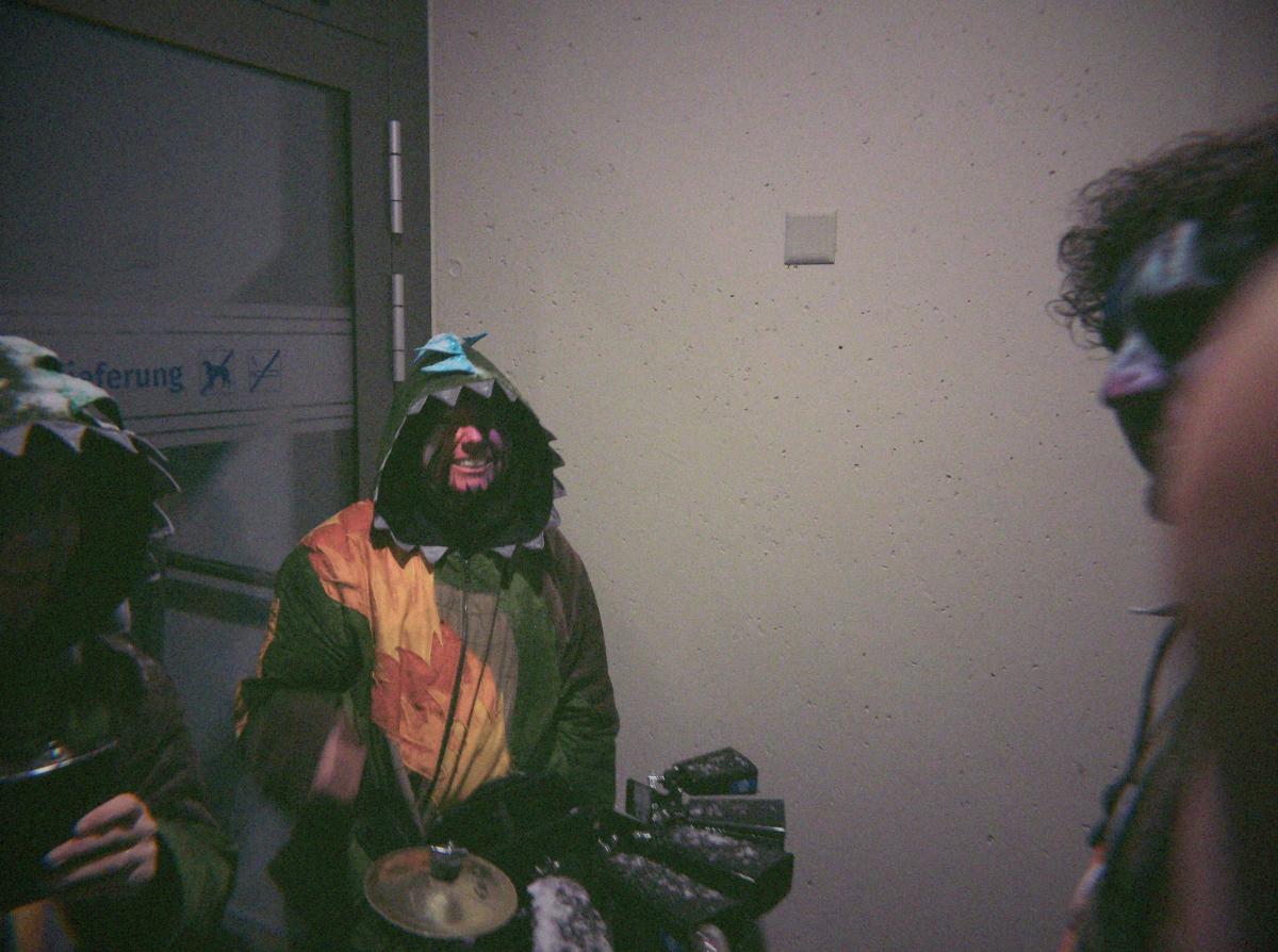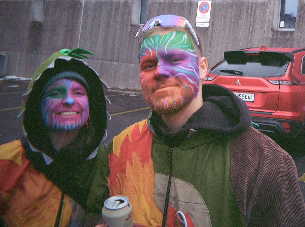 Nach der Guggenverpflegung wurde das TG-Gelände weiter unsicher gemacht. Während die einen im übergrossen Kürbis um die Wette tranken, telefonierten andere nach Zürich und fragten, ob es dort auch schneie. Fazit: Bülach hatte Schnee, Goldau nicht.
