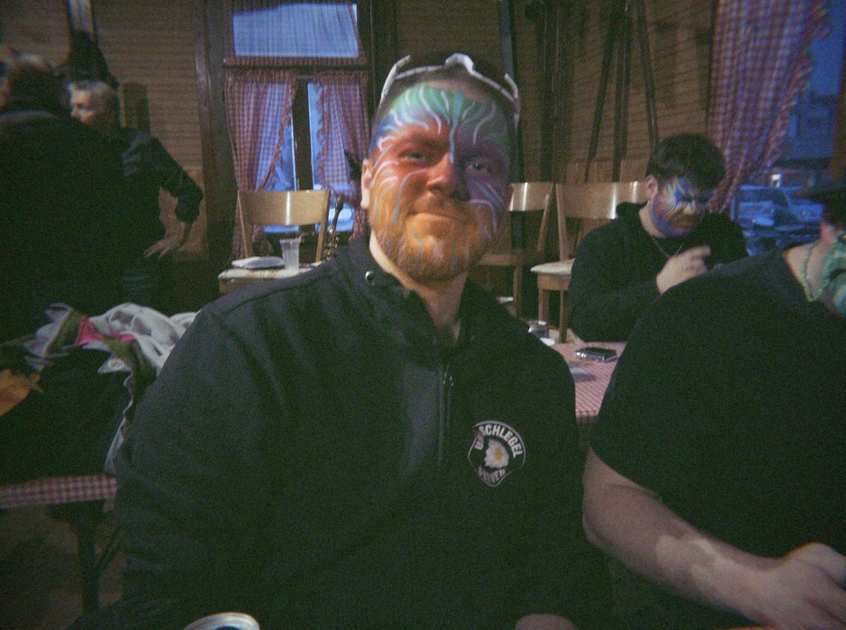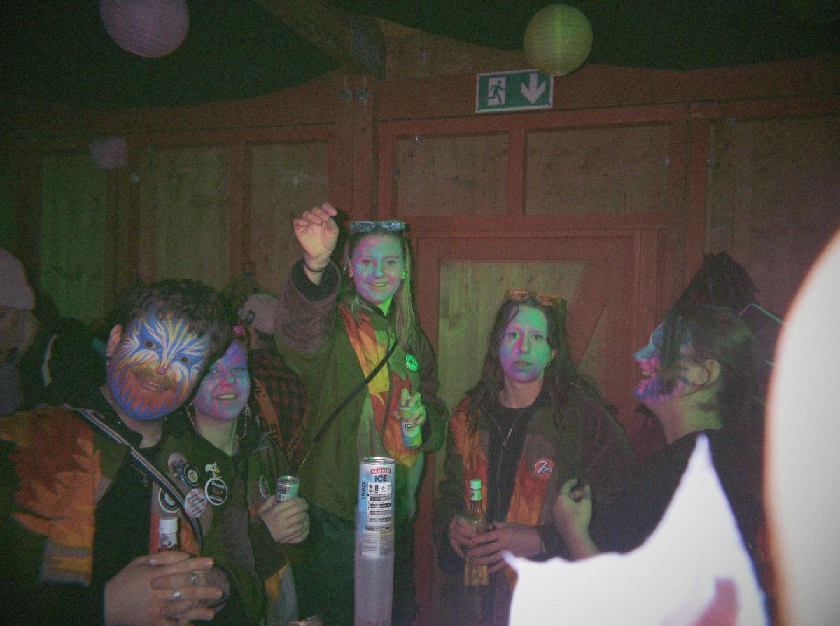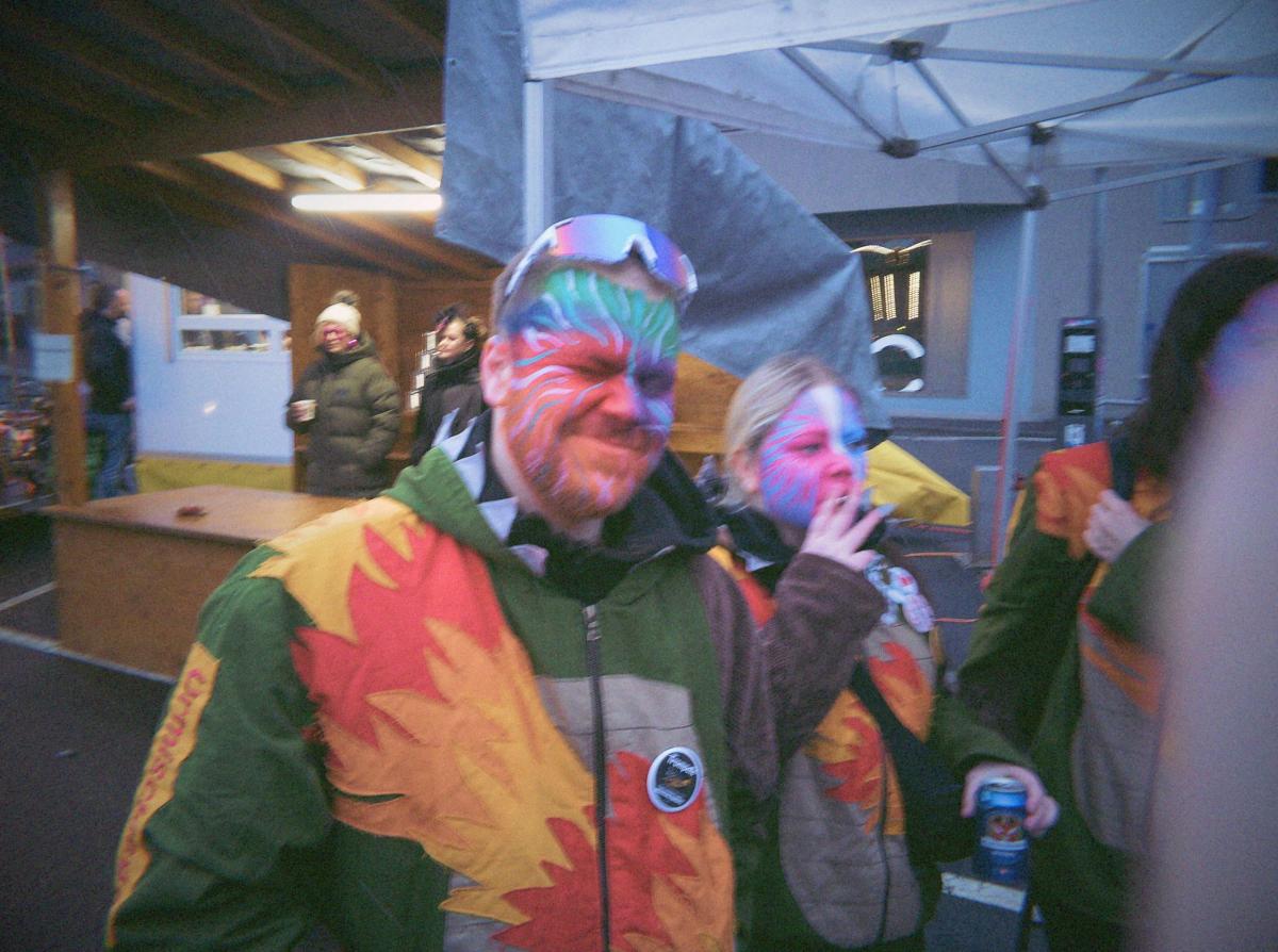 Nach der Guggenverpflegung wurde das TG-Gelände weiter unsicher gemacht. Während die einen im übergrossen Kürbis um die Wette tranken, telefonierten andere nach Zürich und fragten, ob es dort auch schneie. Fazit: Bülach hatte Schnee, Goldau nicht.