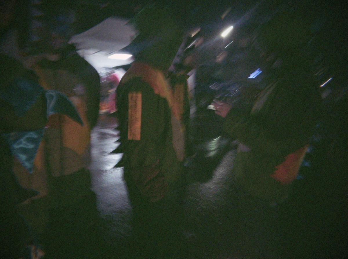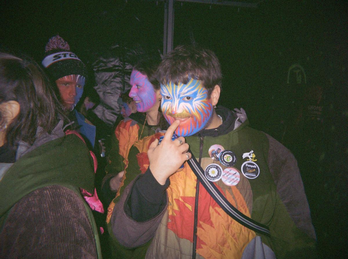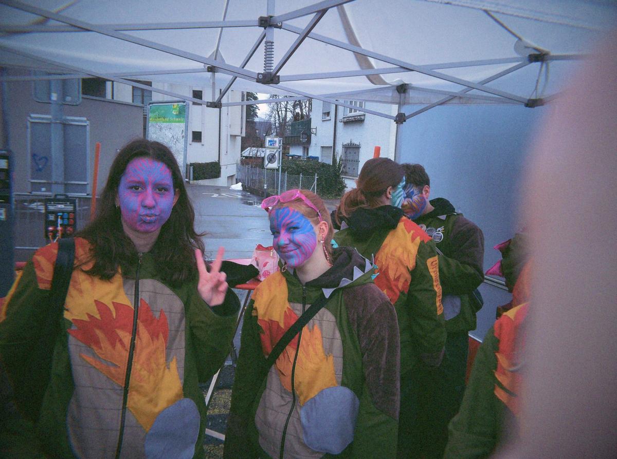 Leise rieselt der Schnee. Der Gmeindsparkplatz in Brunnen wurde langsam von einer weissen Schicht Schnee bedeckt. Zum guten Glück hatten die Timpelgeister (ab jetzt werden sie in diesem Text mit TG abgekürzt) eine kleine Zeltstadt aufgebaut, in der wir uns bis zu unserem Auftritt verweilen konnten. Zur Auswahl stand die Kaffeestube, das Party-/Auftrittszelt, der Schüttelwagen, die Trüllerhölle, und ein umgebauter Niederflurbus.